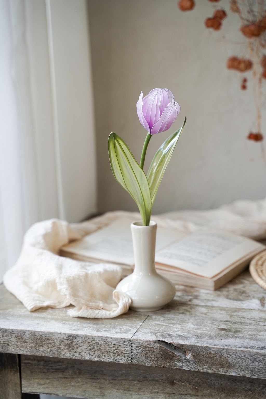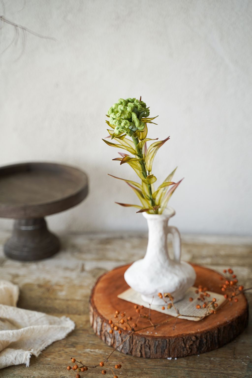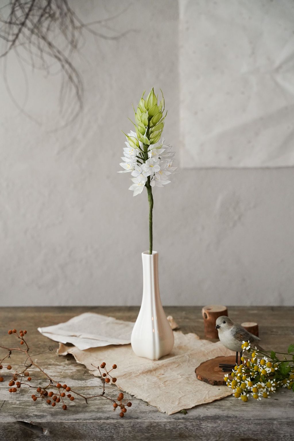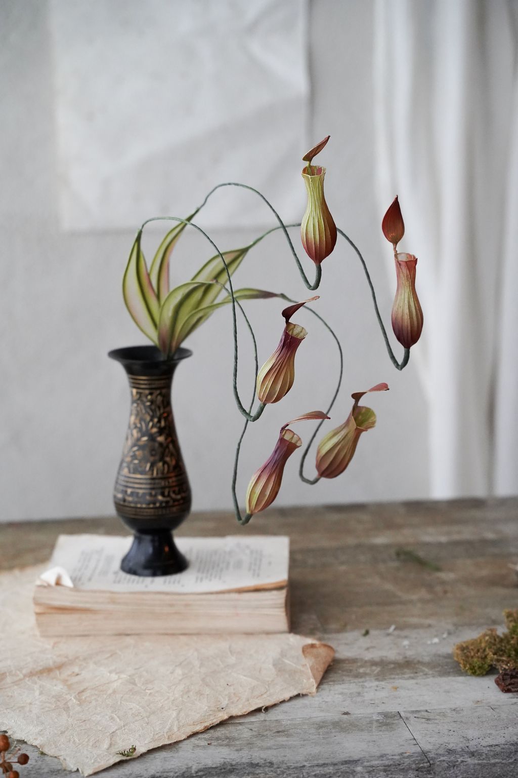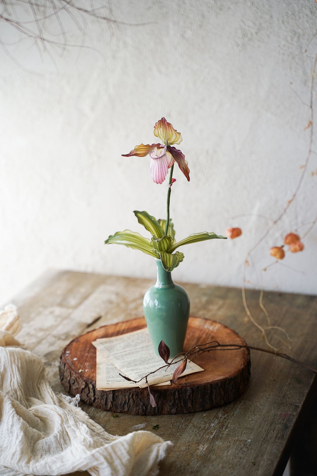 水晶花是一門手工藝與花藝設計的結合,透過鐵絲凹折成花瓣與葉子的架構,於造花液浸沾一層薄膜,待風乾後呈現透亮質地,最後組合與姿態造型。
