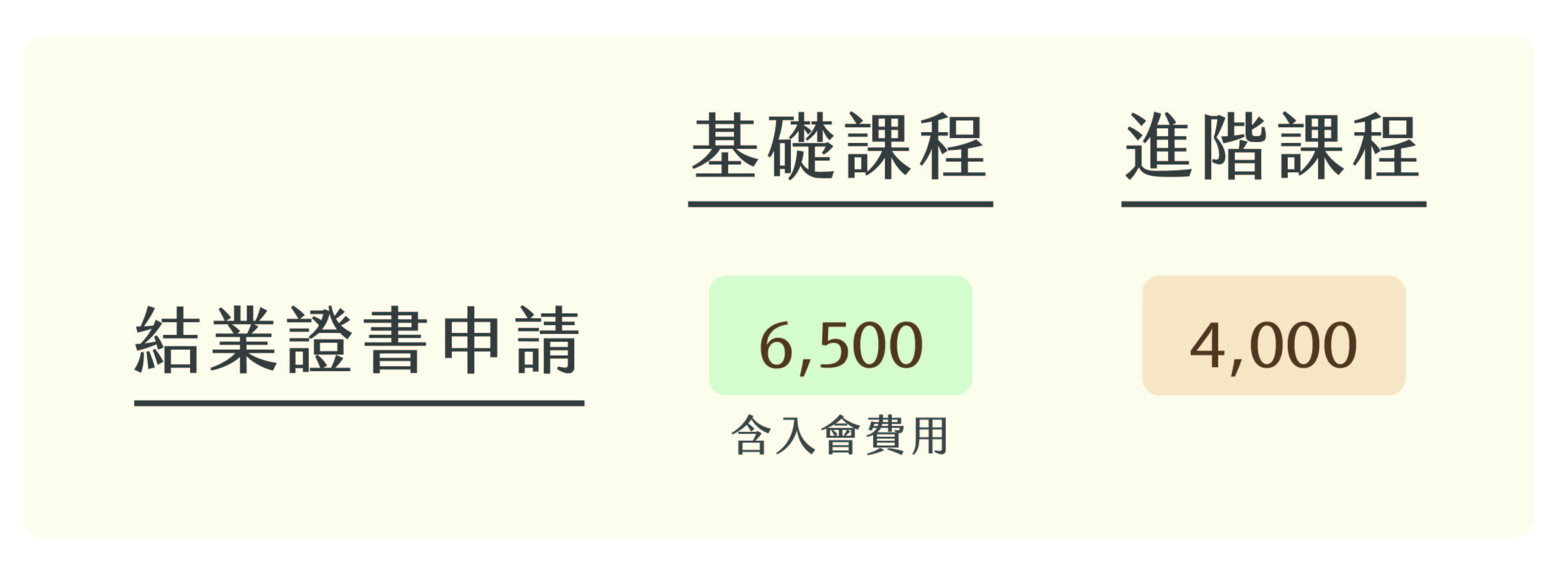 - 每階段課程學習期限最長為兩年半,如超過此期間,將無法繼續研修,未完成課程不予退款。